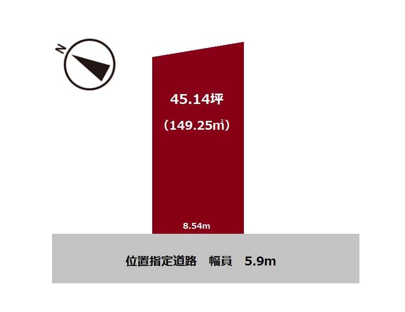 | 接道 | 西側: 私道 幅員 5.90m 間口 8.50m | ||