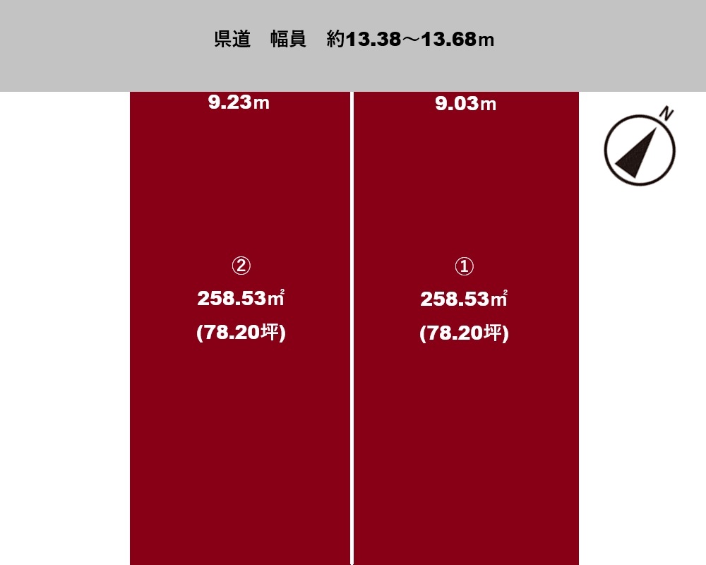 | 接道 | 北西側: 公道 幅員 13.38m 間口 9.20m | ||