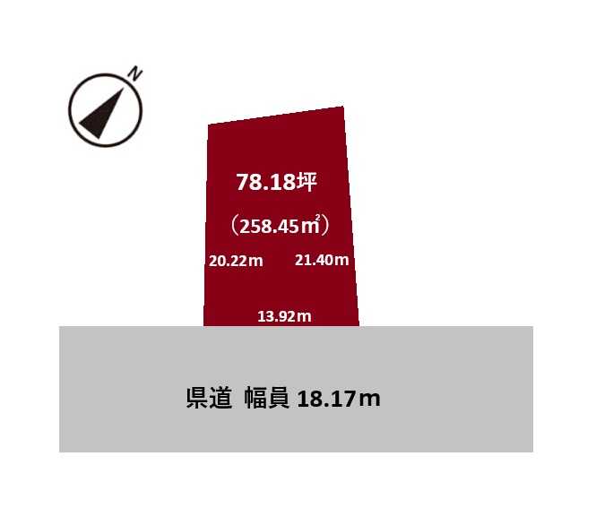 | 接道 | 南側: 公道 幅員 18.10m 間口 13.90m | ||
